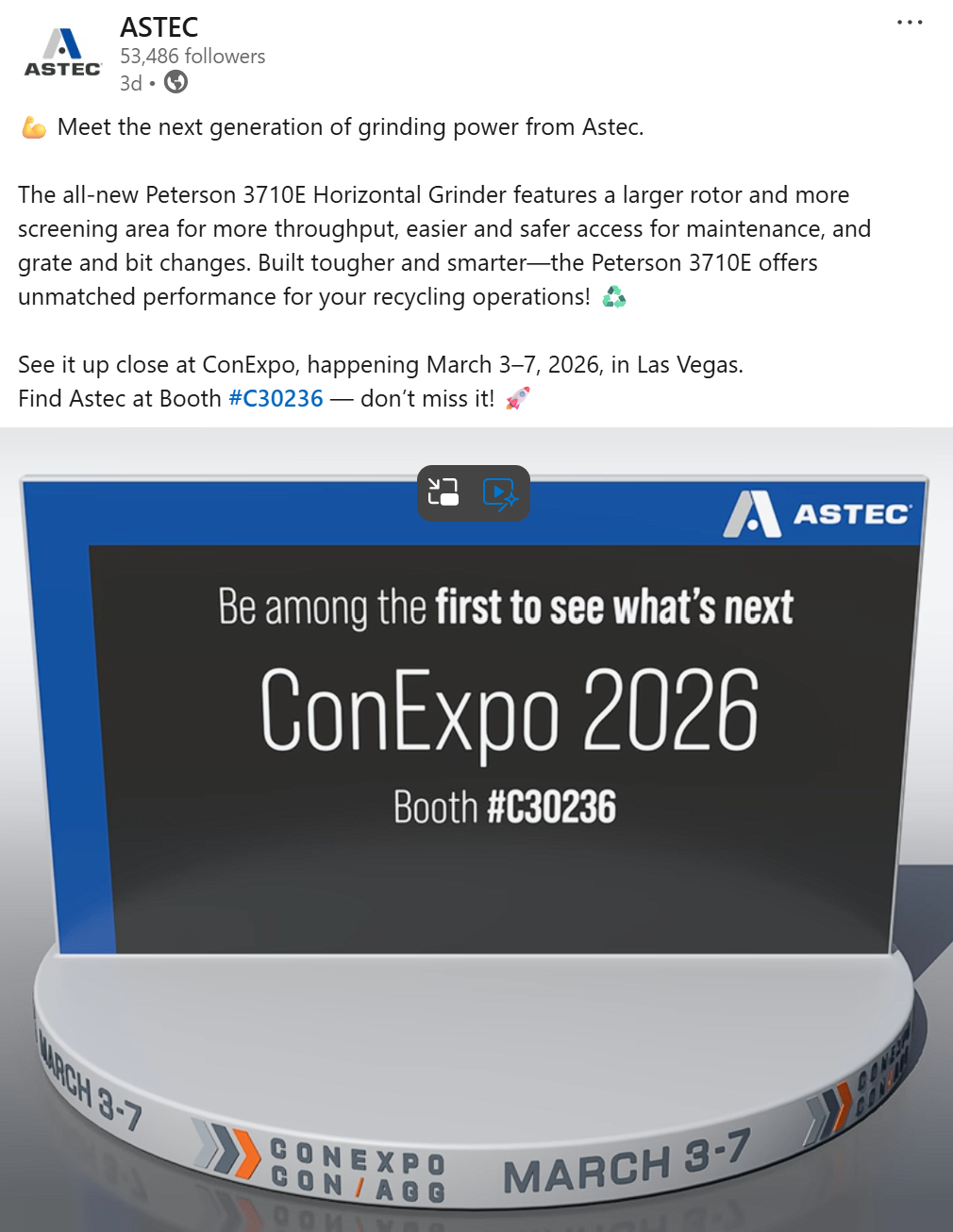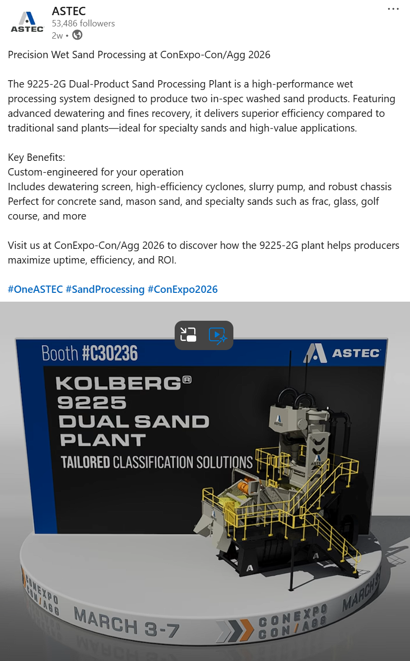 Astec Industries is using content to count down to the show, spotlighting individual products and maximizing exposure for each release. Astec also partnered with media outlets such as Heavy Equipment Guide to expand reach.