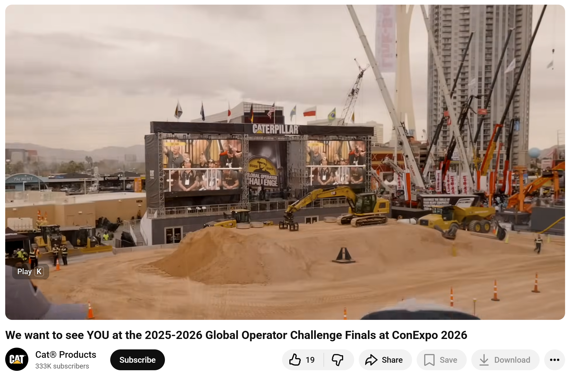 Caterpillar is leveraging social media to highlight booth activity and build excitement for their Operator Challenge finals, while also engaging trade media to spotlight equipment lineups and its keynote on the Ground Breakers Stage.